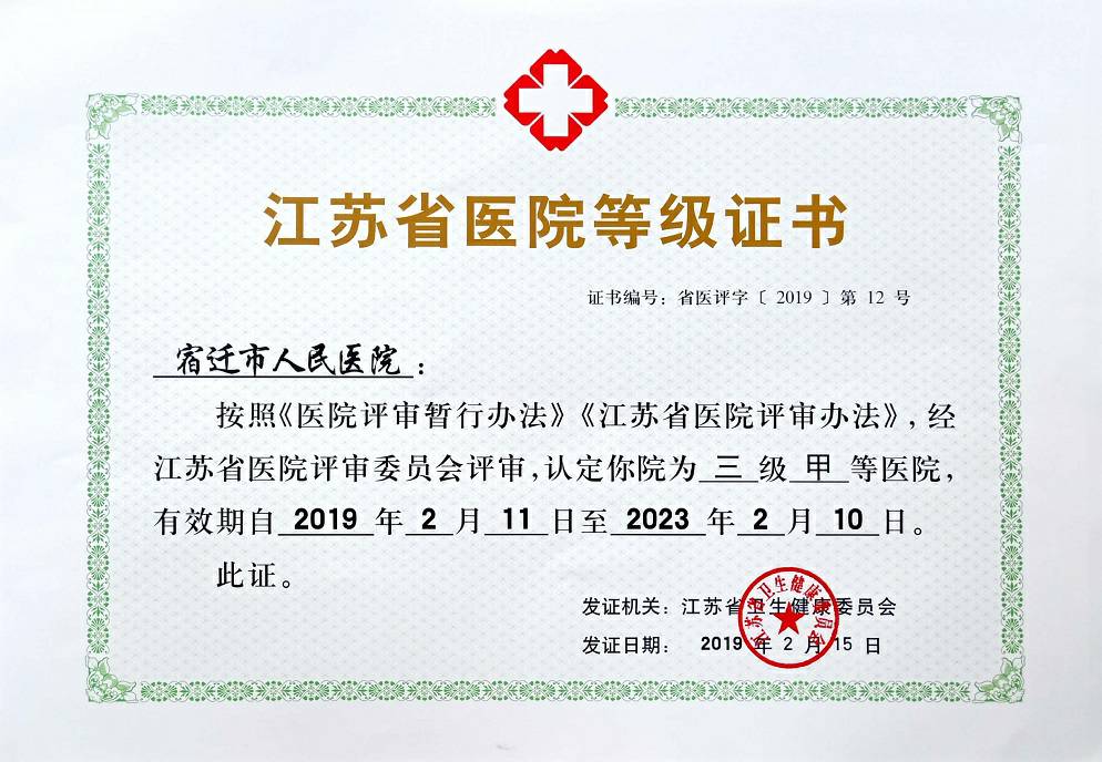 医院先后荣获“全国百姓放心示范医院”、“全国模范职工之家”、“省先进基层党组织”、“省卫生系统先进单位”、“江苏省医保管理AAA级诚信服务单位”等荣誉称号,2016年荣获“全国百姓放心医院百佳示范医院”称号, 2017年又获得江苏省首批“平安示范医院”称号